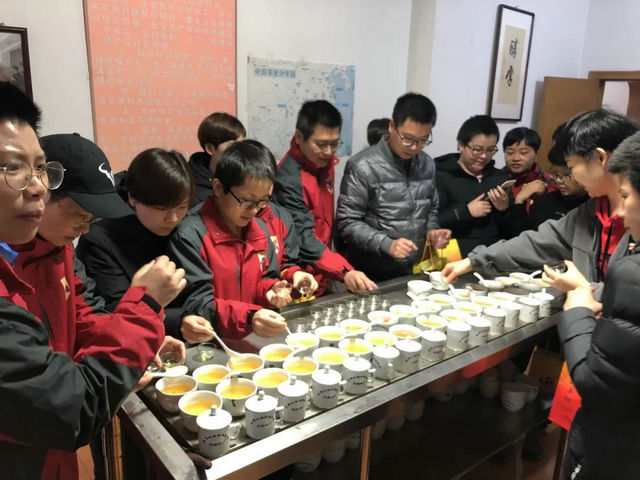 随后,医疗队员们来到审评室对今年的金骏眉春茶进行审评。由正山堂茶业高级评员为大家讲解茶叶审评的流程、要点以及如何判断这款茶的优劣。首次了解到茶叶审评的医疗队员们对此都十分好奇,纷纷跃跃欲试,品鉴今年的金骏眉春茶。