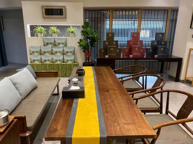 案台上多样精致的点心,石上一品岩茶一并俱全。在正岩茶茶香袅袅,莅临宾客们在一团喜气之中入座交谈品茶。