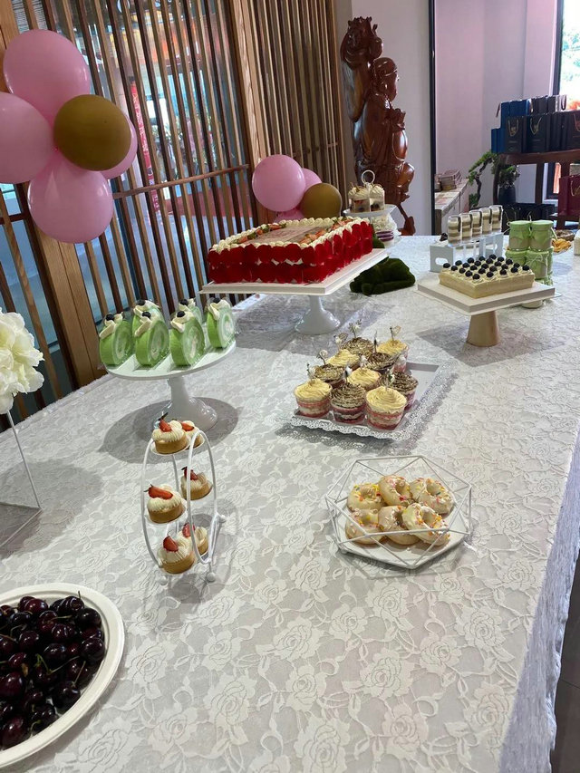 案台上多样精致的点心,石上一品岩茶一并俱全。在正岩茶茶香袅袅,莅临宾客们在一团喜气之中入座交谈品茶。